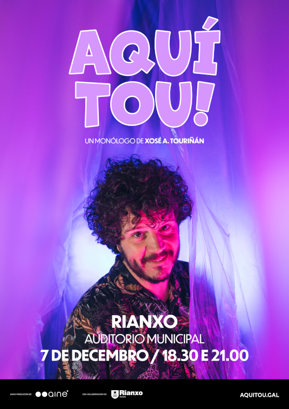 Dado que se esgotaron as entradas para a función das 21.00 horas, ábrese outra función ás 18.30 horas. Teatro, Aquí Tou, un monólogo de Xosé A. Touriñán. DÍA: domingo 07 de decembro HORA: 18.30 e 21.00 h LUGAR: sala Arcos Moldes do Auditorio de Rianxo PÚBLICO DESTINATARIO: todos os públicos ENTRADA: 19,44 € . Á venda en...