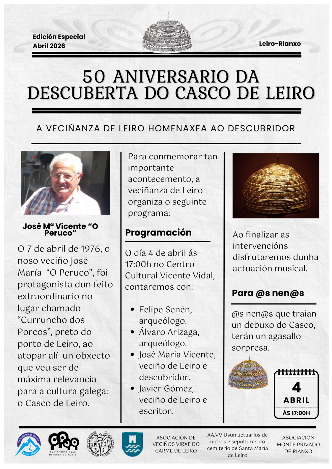 50 Aniversario da descuberta do Casco de Leiro. DÍA: venres 04 de abril HORA: 17.00 h LUGAR: Centro Cultural Vicente Vidal de Leiro