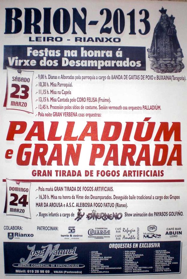 Programación das Festas de Brión 2013, na honra á Virxe dos Desamparados.