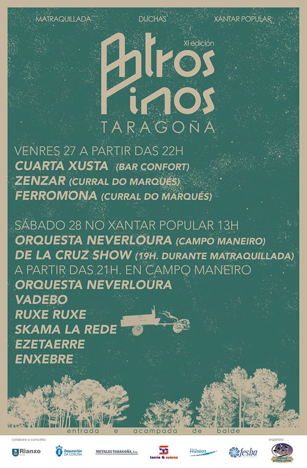 A Asociación Festival Antrospinos organiza, un ano máis, este festival na súa XI edición, coa colaboración do Concello de Rianxo, e co seu epicentro no lugar de Campo Maneiro (Taragoña), os días 27 e 28 de xullo.